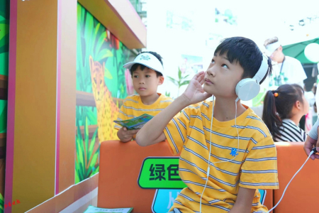 “有啄木鳥、有青蛙,剩下的我聽不出來……”在“萬物有聲”游戲環(huán)節(jié),小朋友認真地和環(huán)保志愿者說。在這個環(huán)節(jié),參與者佩戴耳機后,可以根據聽到的聲音猜動物的名稱。各種動物的聲音,著實吸引了不少小朋友的參與,有的小朋友還模仿發(fā)出聲音的動物形象,惟妙惟肖,讓現場不少人笑出聲來。