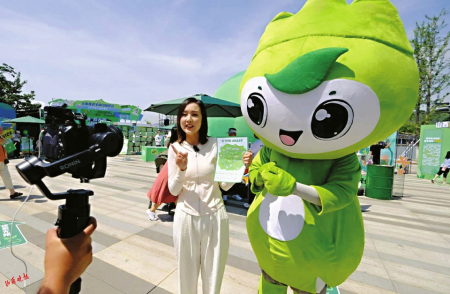 開幕日當天正值兒童節(jié),太原植物園里有很多小朋友和爸爸媽媽一起來游玩。剛進植物園大門,孩子們就被眼前的巨型環(huán)創(chuàng)雕塑吸引住了。在綠色的“‘碳’索無限·綠色生活節(jié)”上,山西省四大旗艦物種首次組團亮相,向大家展示廢舊物品的可持續(xù)循環(huán)腦洞,路過的游客紛紛進行創(chuàng)意合拍。很多小朋友在家長的陪伴下,領取偵“碳”地圖,在游戲中體驗低碳生活的樂趣。