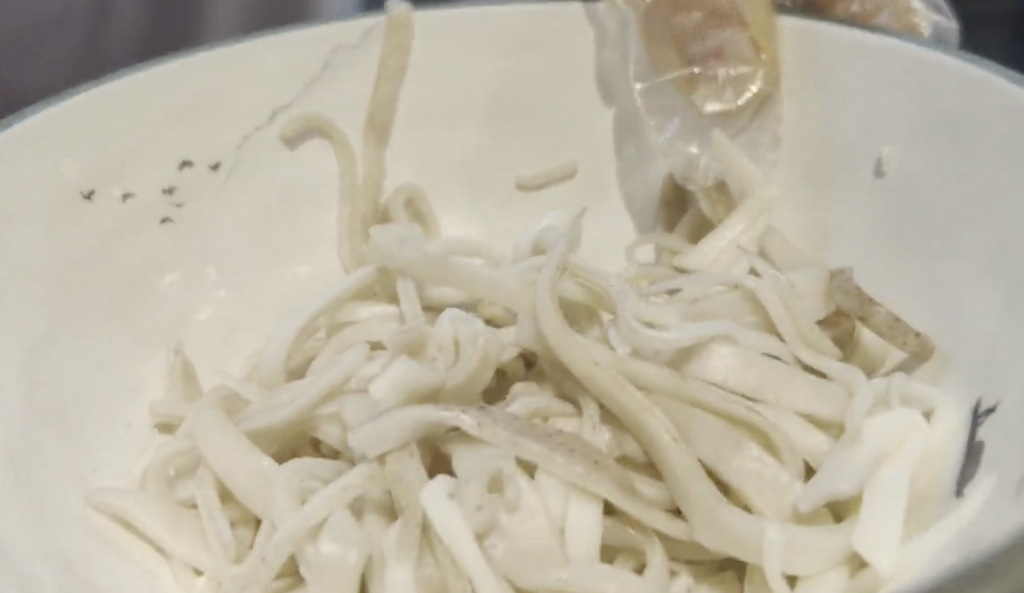 圖為剪刀面制作過程。新華社記者 王怡靜 攝??關(guān)于“清徐沾片子”則是一個節(jié)儉的故事。沾片子是一種以各種蔬菜蘸面煮食的面食,也被稱為菜疙瘩、蘸尖尖或拖葉子。為了避免浪費家里剩的面粉、蔬菜,農(nóng)民們下地干活兒前,會將各種蔬菜切成薄片,然后用面粉和水調(diào)成的面糊包裹,放入水中煮熟。以前沒有太多可食用的蔬菜,“沾片子”多用玉谷葉或其他野菜,現(xiàn)在則出現(xiàn)了“沾豆角”“沾土豆”“沾茄子”等新吃法。