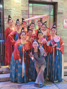 “忻青年”第一個(gè)視頻的標(biāo)題是《跟著我們?cè)诠懦墙值郎响牌饋?,民族的才是世界的》。最初的賬號(hào)只是推送藝術(shù)團(tuán)在演出之余的短視頻,用于宣傳沉浸式演出《遇見秀容》。民間舞較大眾化,有熟悉的旋律,廣場(chǎng)舞動(dòng)作簡單又生活化,容易普及。通過短視頻讓更多的人了解忻州古城,看見《遇見秀容》團(tuán)隊(duì)演出之余的生活。