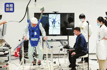林先生已經(jīng)可以在懸吊下獨(dú)立使用助步器行走,他激動(dòng)地說(shuō):“我終于再次體會(huì)到走路的感覺(jué)?!?/p>