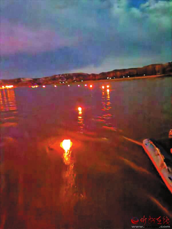 一盞盞花燈放入河中。色彩艷麗的河燈順著黃河主航道向前漂移,燈點綴河,河簇擁燈,無比壯觀。從早先放365盞燈,到現(xiàn)在的3650盞燈,場面更加宏大輝煌。