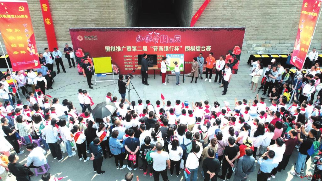 5月22日上午,忻州古城東門永豐門城墻下,來自忻州各圍棋培訓(xùn)機構(gòu)的100名少年兒童,與忻州十幾位業(yè)余高手車輪對決,用這種別開生面的方式,表達(dá)“紅領(lǐng)巾永遠(yuǎn)心向黨”的赤子情懷。這一活動由忻州廣播電視臺通過微視頻進(jìn)行了現(xiàn)場直播。 (郭劍峰 攝)