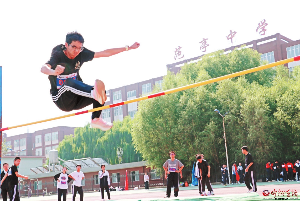 近日,2025年原平市中小學(xué)秋季田徑運(yùn)動(dòng)會(huì)在原平市范亭中學(xué)體育場(chǎng)舉行。圖為參賽選手在跳高比賽中大顯身手。 (褚 震攝)