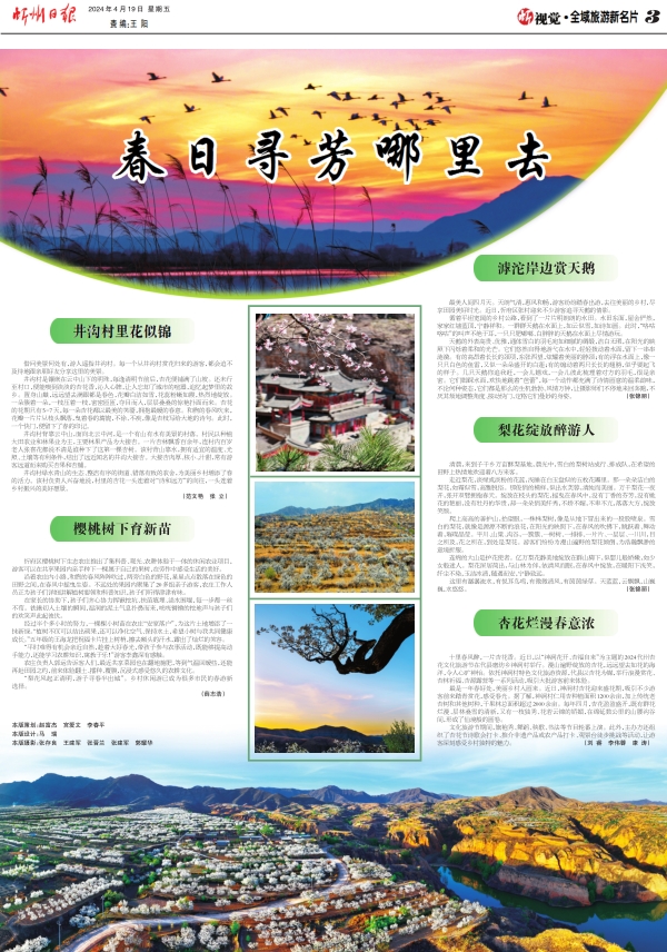 最美人間四月天。天朗氣清,惠風(fēng)和暢,游客紛紛踏春出游,去往美麗的鄉(xiāng)村,盡享田園美好時光。近日,忻府區(qū)張村迎來不少游客追尋天鵝的倩影。