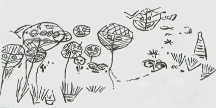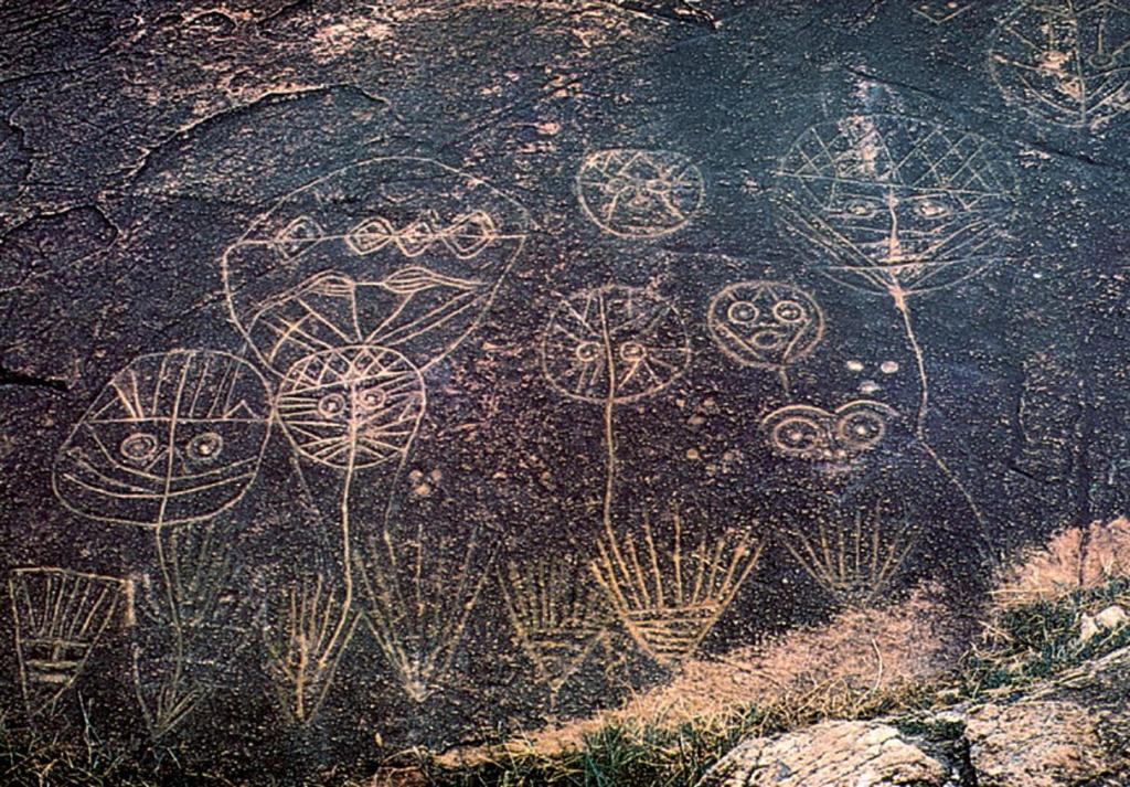 (上圖:新石器時代《稷神崇拜圖》;下圖:《稷神崇拜圖》復(fù)原圖。)
