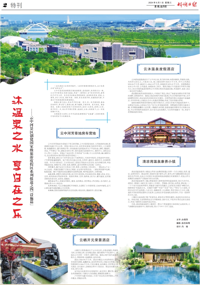云中河溫泉旅游度假區(qū)集旅游度假、溫泉康養(yǎng)、休閑娛樂為一體,以云中河景觀生態(tài)廊為基礎(chǔ),形成“一廊兩園三區(qū)”的空間布局,面積22.75平方公里。區(qū)內(nèi)有多家高品質(zhì)度假酒店、溫泉特色民宿、營地、公寓等,共計143家、3087間房。房型、床位類型多樣,設(shè)施配套完善,可滿足不同類型游客的度假需求。
