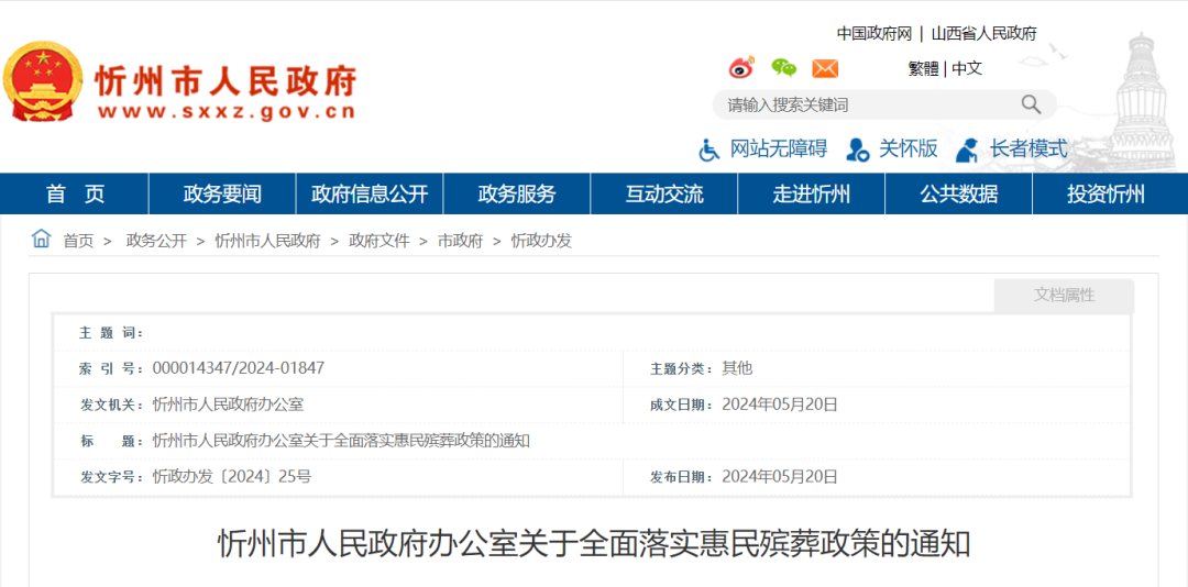 為進(jìn)一步健全殯葬基本服務(wù)保障制度,全面落實(shí)惠民殯葬政策,促進(jìn)我市殯葬基本公共服務(wù)均等化,根據(jù)《中共山西省委辦公廳 山西省人民政府辦公廳印發(fā)(關(guān)于加快推進(jìn)全省殯葬綜合改革促進(jìn)殯葬事業(yè)發(fā)展的實(shí)施意見(試行)〉的通知》(晉辦發(fā)〔2021〕15 號)精神,決定從2024年6月1日起,對全市居民基本殯葬服務(wù)費(fèi)用實(shí)施減免,同時免除特殊貢獻(xiàn)群體部分殯葬延伸服務(wù)費(fèi)。現(xiàn)將有關(guān)事項(xiàng)通知如下。
