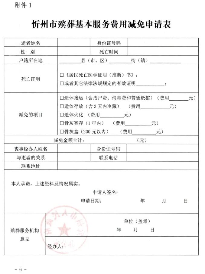 附件:1.忻州市殯葬基本服務(wù)費(fèi)用減免申請表