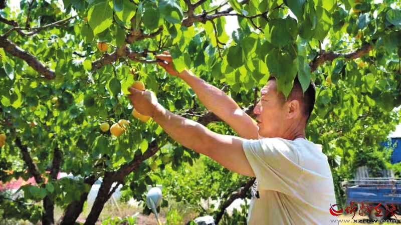 村民張連成每天早早地就來到自家杏園里摘杏,然后進(jìn)行挑選、裝箱,忙得不亦樂乎。“每天都能接到不少訂單,為了保證杏的新鮮度,必須當(dāng)天現(xiàn)摘才行。”張連成一邊跟記者交談,一邊熟練地將白水杏挨個(gè)包好果網(wǎng)裝箱。“我種了30畝的白水杏,一畝地差不多能產(chǎn)1000多斤,按照歷年的行情來說,差不多能掙七八萬。”說到收入,老張笑得合不攏嘴。