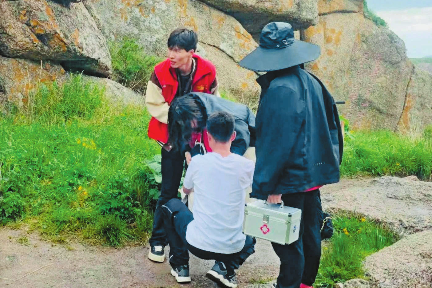 景區(qū)工作人員對扭傷游客及時救助