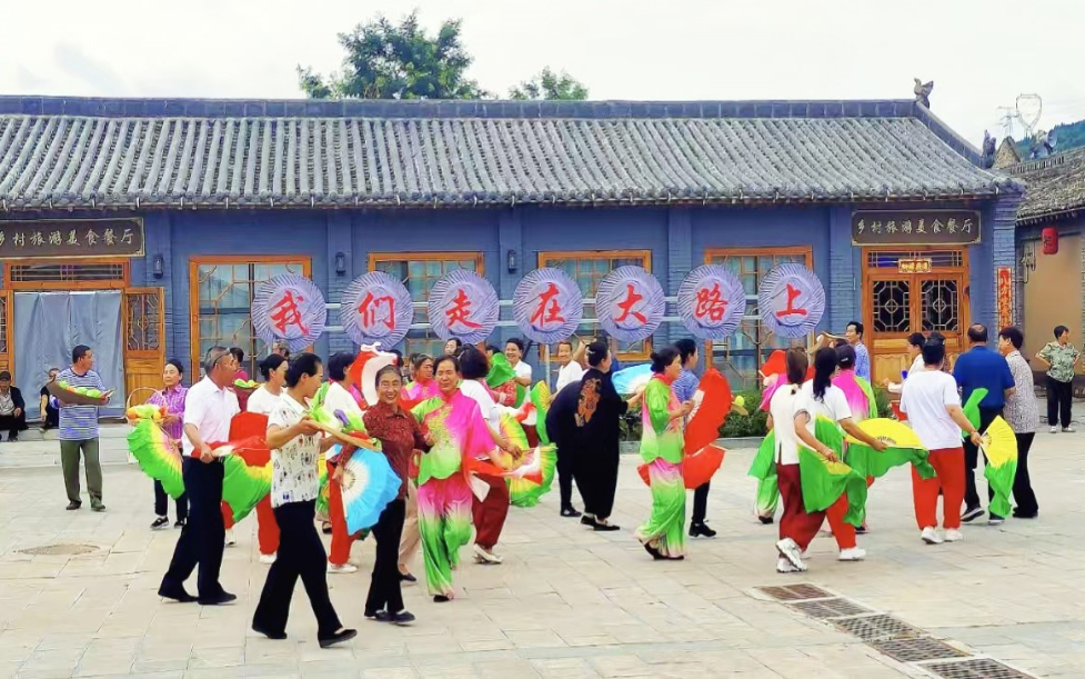 8月8日,宋家溝村正在演出鄉(xiāng)村小劇場年代秀《我們走在大路上》。 新華網(wǎng)發(fā)(忻州市廣播電視臺 王鵬宇 攝)