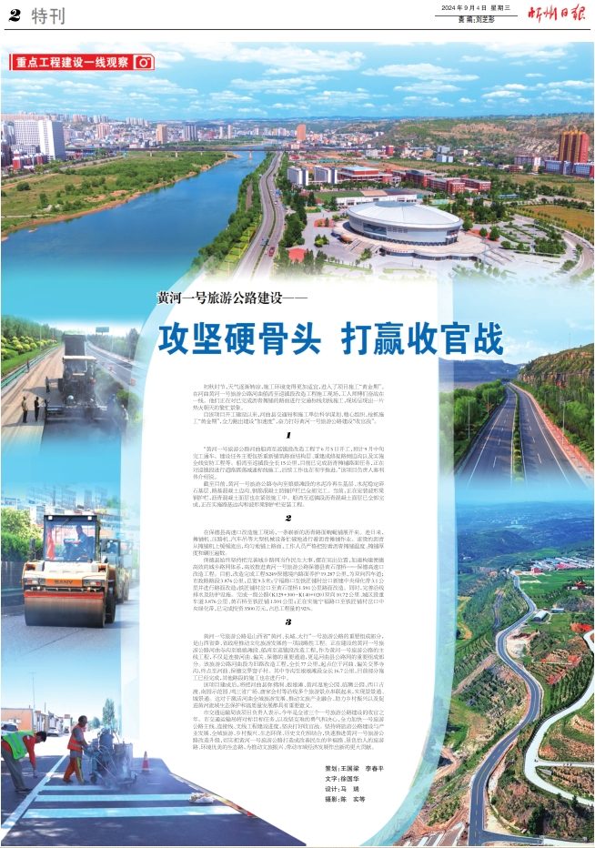 “黃河一號(hào)旅游公路河曲船灣至巡鎮(zhèn)段改造工程于6月5日開工,預(yù)計(jì)9月中旬完工通車。建設(shè)任務(wù)主要包括重新鋪筑路面結(jié)構(gòu)層、重建或修復(fù)路側(cè)邊溝以及實(shí)施全線安防工程等。船灣至巡鎮(zhèn)段全長(zhǎng)15公里,目前已完成瀝青攤鋪路面任務(wù),正在對(duì)巡鎮(zhèn)段進(jìn)行道路震蕩減速標(biāo)線施工,后續(xù)工作也在有序推進(jìn)?!痹擁?xiàng)目負(fù)責(zé)人秦利偉介紹說(shuō)。