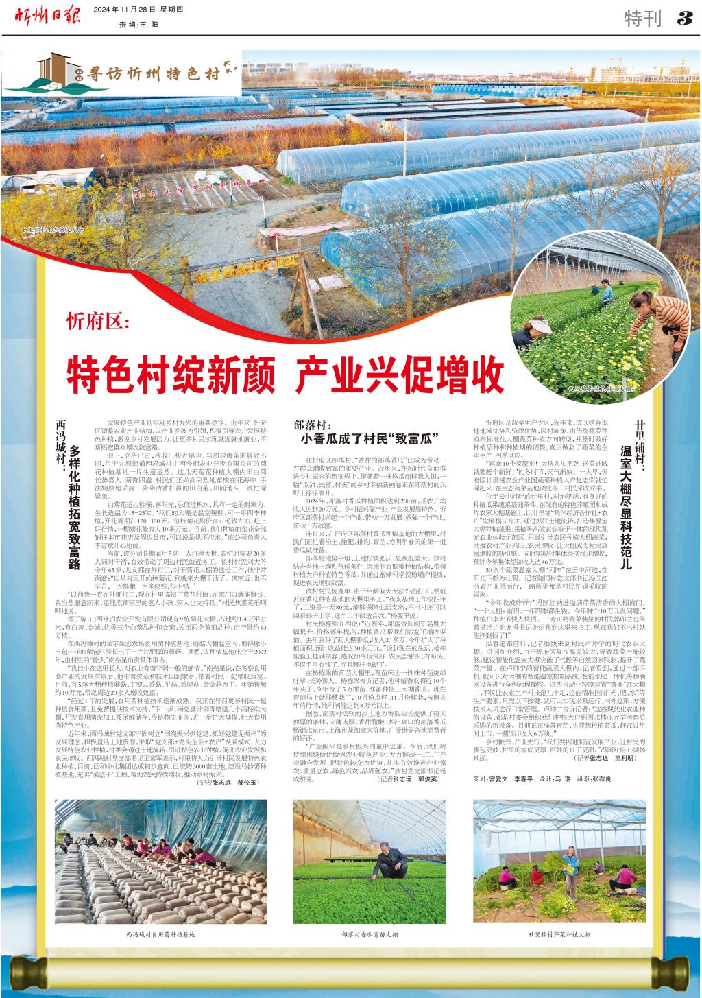 發(fā)展特色產(chǎn)業(yè)是實(shí)現(xiàn)鄉(xiāng)村振興的重要途徑。近年來(lái),忻府區(qū)調(diào)整農(nóng)業(yè)產(chǎn)業(yè)結(jié)構(gòu),以產(chǎn)業(yè)發(fā)展為引領(lǐng),積極引導(dǎo)農(nóng)戶發(fā)展特色種植,激發(fā)鄉(xiāng)村發(fā)展活力,讓更多村民實(shí)現(xiàn)就近就地就業(yè),不斷拓寬群眾增收致富路。