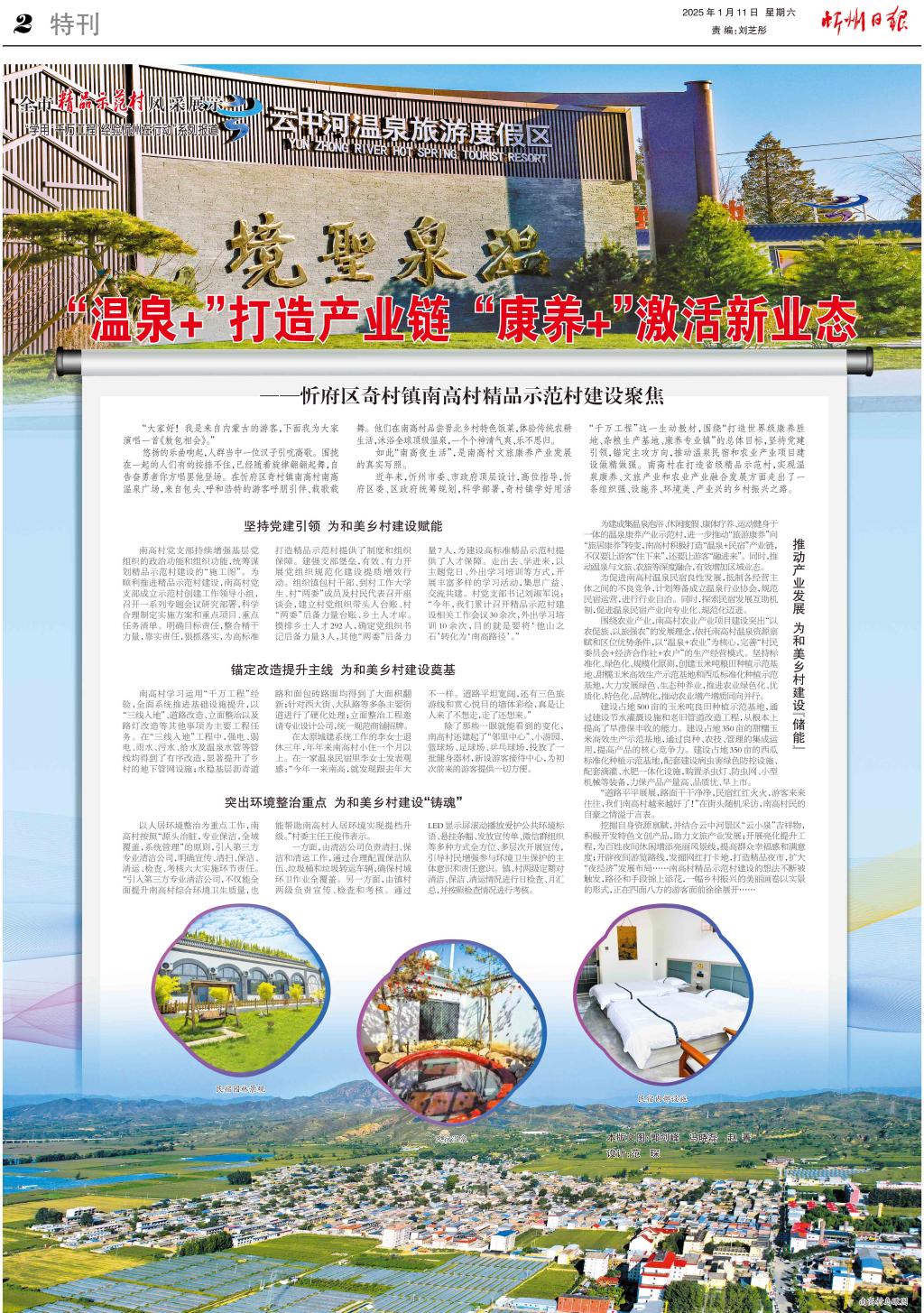 近年來,忻州市委、市政府頂層設(shè)計,高位指導(dǎo),忻府區(qū)委、區(qū)政府統(tǒng)籌規(guī)劃,科學(xué)部署,奇村鎮(zhèn)學(xué)好用活“千萬工程”這一生動教材,圍繞“打造世界級康養(yǎng)勝地、雜糧生產(chǎn)基地、康養(yǎng)專業(yè)鎮(zhèn)”的總體目標(biāo),堅持黨建引領(lǐng),錨定主攻方向,推動溫泉民宿和農(nóng)業(yè)產(chǎn)業(yè)項目建設(shè)做精做強(qiáng)。南高村在打造省級精品示范村,實現(xiàn)溫泉康養(yǎng)、文旅產(chǎn)業(yè)和農(nóng)業(yè)產(chǎn)業(yè)融合發(fā)展方面走出了一條組織強(qiáng)、設(shè)施齊、環(huán)境美、產(chǎn)業(yè)興的鄉(xiāng)村振興之路。