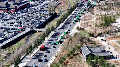 春日的五臺(tái)山繁花點(diǎn)點(diǎn)、楊柳吐翠,群山環(huán)抱的自然風(fēng)光與井然有序的旅游環(huán)境交相輝映,呈現(xiàn)出一幅人與自然和諧共生的美麗畫卷。寺廟內(nèi)外、步道兩旁,到處奇松、怪石、山花相映成趣,游客們紛紛駐足,欣賞這絕美畫卷。