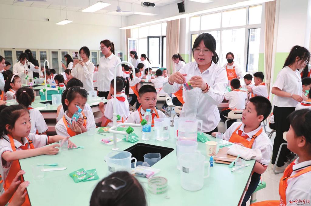 5月14 日,忻州師范學(xué)院生物系和忻州市七一路小學(xué)聯(lián)合舉辦“探尋奇妙生物,解鎖生命密碼”動(dòng)植物科普進(jìn)校園活動(dòng)。圖為大學(xué)生們指導(dǎo)孩子們進(jìn)行科學(xué)實(shí)驗(yàn)。 (記者張存良攝)