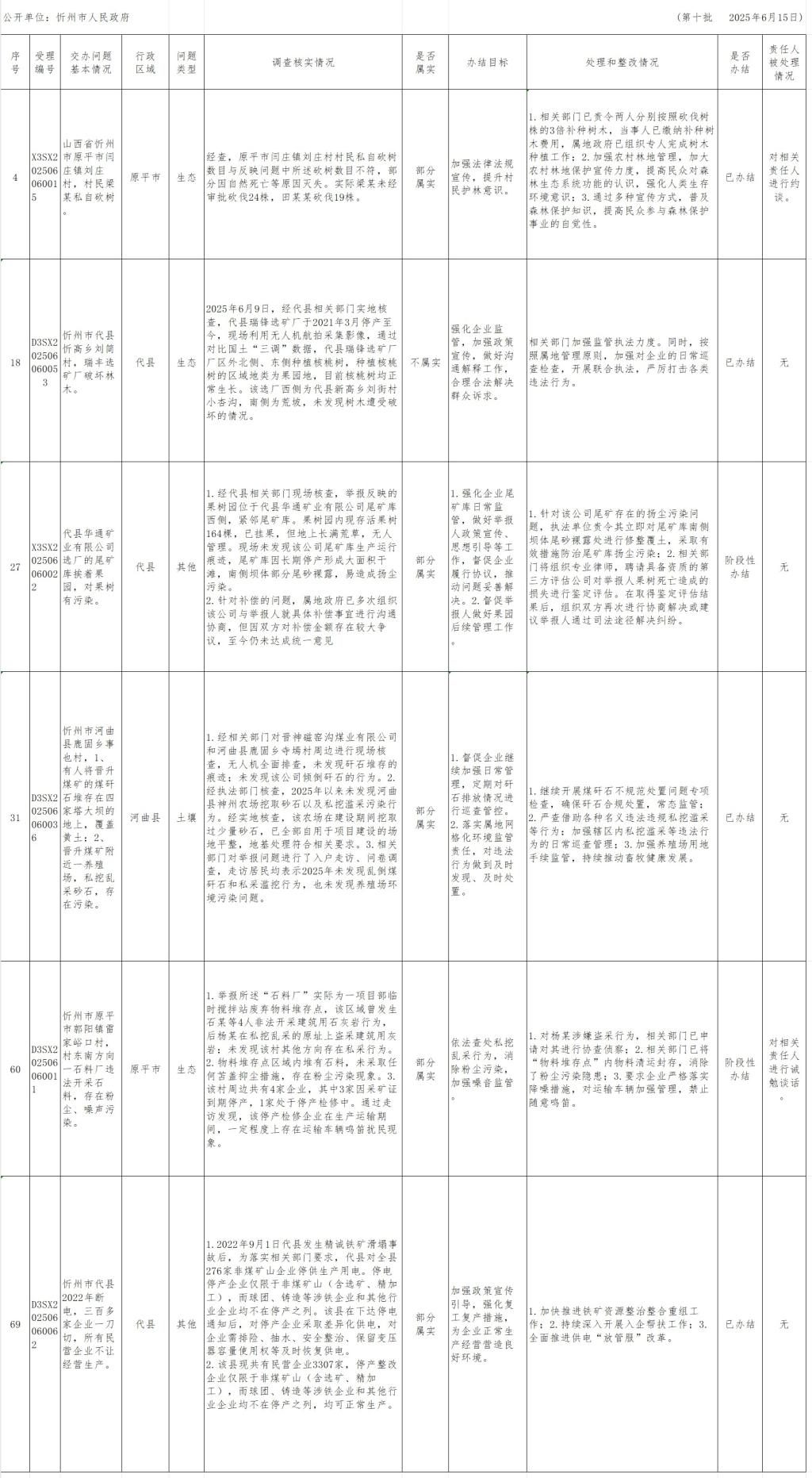 中央生態(tài)環(huán)境保護督察組群眾信訪舉報轉(zhuǎn)辦和邊督邊改公開情況一覽表