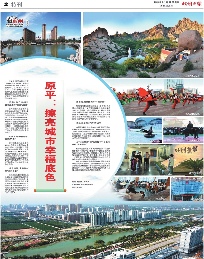 從今天起,《看見忻州》推出縣域篇,展示各縣(市)在基礎(chǔ)設(shè)施、文化場(chǎng)館、公園綠地等方面的成績(jī),反映城市品質(zhì)和人民生活水平的提升。本報(bào)二版整版推出首篇《原平:擦亮城市幸福底色》,以饗讀者。