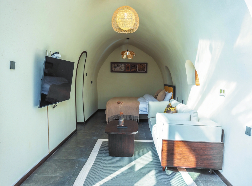 設(shè)計獨特的三層小院子,是游客喝茶、露營、抄經(jīng)、健身的好去處。民宿于2024年2月9日(大年三十)試營業(yè),共有22間不同主題的客房,節(jié)假日期間每天客滿,平時的入住率在80%以上,深受游客歡迎。(劉耀 宮可欣)