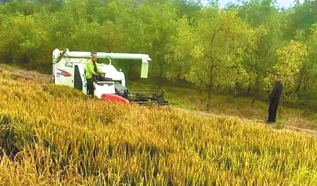 金秋時節(jié),保德縣馮家川鄉(xiāng)的20余畝鹽堿地試種稻田里,金黃稻穗壓彎了稻稈,微風(fēng)拂過,掀起層層“金浪”。隨著聯(lián)合收割機(jī)的轟鳴聲響起,成片水稻被快速切割、脫粒、清選,飽滿的谷粒源源不斷地被送入儲糧箱,標(biāo)志著當(dāng)?shù)厥状嘻}堿地水稻試種迎來豐收。經(jīng)測算,畝產(chǎn)達(dá)830斤左右,順利達(dá)成預(yù)期產(chǎn)量目標(biāo)。