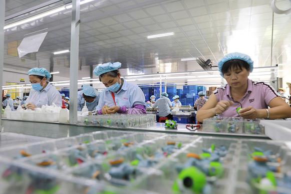 2017年,連樟村建起了一個913平方米的車間,2018年開始投產(chǎn),主要生產(chǎn)兒童玩具,村民責負流水線上的裝配生產(chǎn),成品發(fā)往全國各地,有些還出口到了海外。通過引導市場資本向農(nóng)村轉(zhuǎn)移,地處粵北偏遠山區(qū)的連樟村辦起了工廠,不僅帶動本地村民出現(xiàn)返鄉(xiāng)潮,連鄰近的外鎮(zhèn)村民也有了更多就業(yè)選擇。