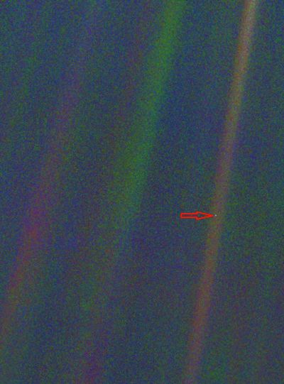 旅行者1號拍攝的太陽系中的暗淡藍(lán)點兒——地球。
