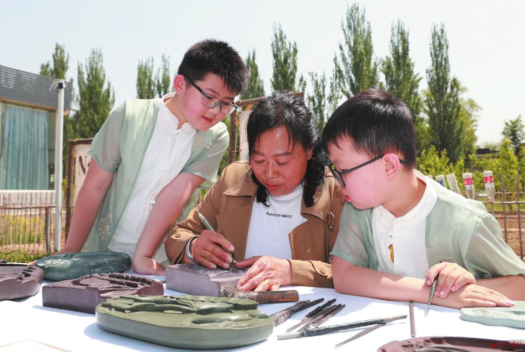 “如果不掌握歷史文化知識,就不會理解硯臺雕刻的價值,這樣的作品是沒有靈魂的?!痹诔幣_雕刻展示臺前,來自定襄的非遺傳承人正在認真講解。身著漢服的學(xué)生刀筆生花,認真進行雕刻體驗。“活動讓孩子感受到了手工制作的樂趣,還學(xué)到了不少非遺文化知識?!笔忻裢觖愓f。