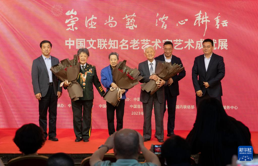 當日,第六屆中國文聯知名老藝術家藝術成就展在中國文藝家之家展覽館開幕。新華社記者 才揚 攝