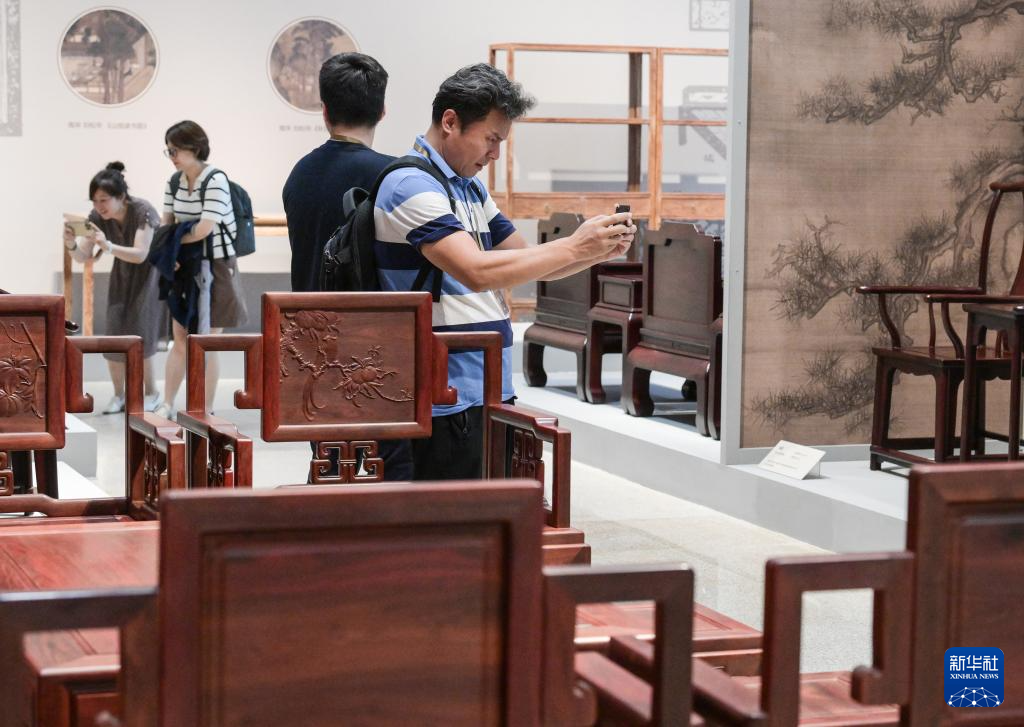 6月27日,觀眾在參觀展覽。 當日,“心·傳——陳玉樹新時代古典家具藝術(shù)展”在位于北京的中國工藝美術(shù)館、中國非物質(zhì)文化遺產(chǎn)館舉辦,展出了高級工藝美術(shù)師陳玉樹近年創(chuàng)作的20套古典家具,展現(xiàn)出中國木作技藝之美。新華社記者 李賀 攝 (責任編輯:盧相?。?/span> |