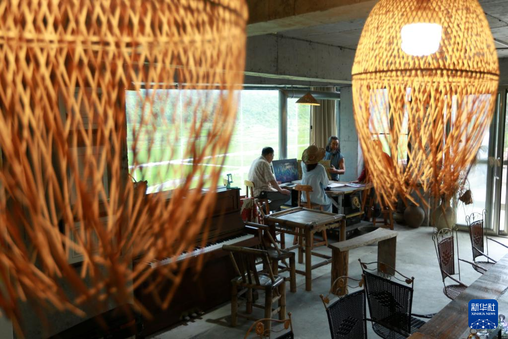 7月3日,在貴州省荔波縣朝陽鎮(zhèn)洪江村,來自各地的藝術(shù)從業(yè)者進行藝術(shù)交流。 近年來,貴州省黔南布依族苗族自治州荔波縣朝陽鎮(zhèn)洪江村以田野風光和閑置老房為媒介,吸引了來自全國各地的100多名藝術(shù)從業(yè)者前來“認養(yǎng)”、修繕舊民居,使之成為自己的工作室。一座座閑置的舊民居在藝術(shù)從業(yè)者手中煥然一新,村民也從舊民居出售、出租與改造中獲得收入,走出了一條助力鄉(xiāng)村振興的新路徑。新華社發(fā)(肖偉 攝) (責任編輯:盧相?。?/span> |