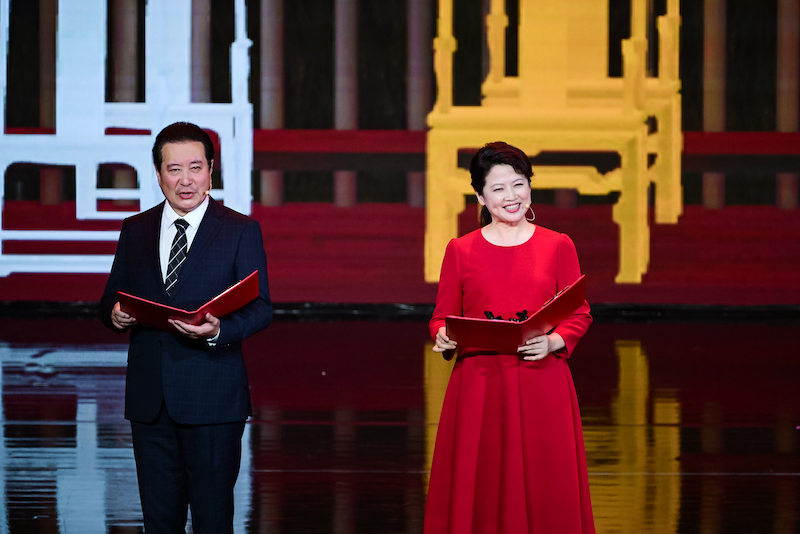 圖為國(guó)家話劇院演員韓童生、張凱麗朗誦《尼好,戲劇》