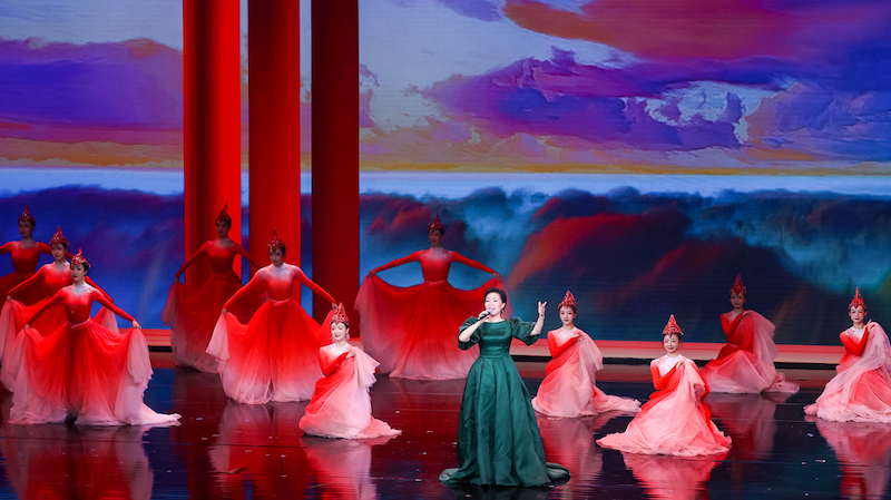 圖為歌唱家雷佳獻(xiàn)唱歌曲《好兒好女好江山》