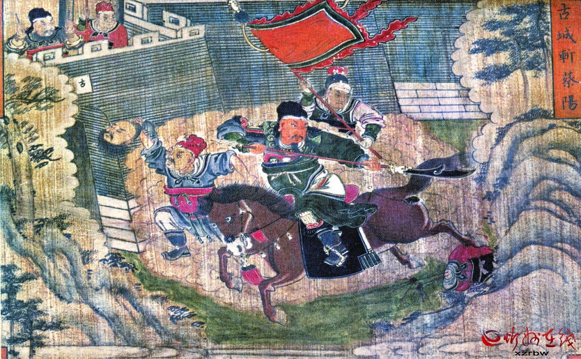 五臺山塔院寺伽藍殿清代壁畫——古城斬蔡陽圖