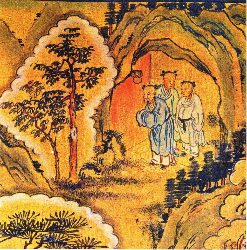 五臺山龍泉寺大雄寶殿東壁民國壁畫——仙人求度圖