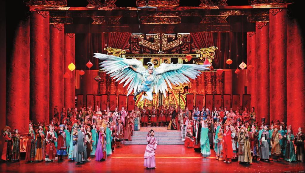 戲劇月的開(kāi)幕大戲是詩(shī)樂(lè)舞大秀《天下歸心》,作品在舞臺(tái)空間上立體展示了濃郁國(guó)風(fēng)特色的時(shí)空布局和視覺(jué)風(fēng)格,劇場(chǎng)內(nèi)敦煌飛天式實(shí)景呈現(xiàn),“詩(shī)”有相、“樂(lè)”有形、“舞”傳神,再現(xiàn)了雁門(mén)關(guān)外的金戈鐵馬,以德化民的泰安繁榮,流傳千年的文景之治……作品通過(guò)大漢王朝和匈奴之間在雁門(mén)關(guān)地域,從戰(zhàn)爭(zhēng)到盟約、再到通婚的歷史故事,表現(xiàn)出“天下一家”的理念。觀眾身臨其境地享受到了一場(chǎng)不可多得的視聽(tīng)和精神盛宴。該劇也是忻州大劇院建成以來(lái)首次對(duì)外公開(kāi)演出。