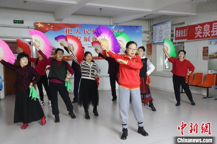 圖為孫立君指導(dǎo)學(xué)員二人轉(zhuǎn)轉(zhuǎn)手絹動(dòng)作。 曾令剛 攝