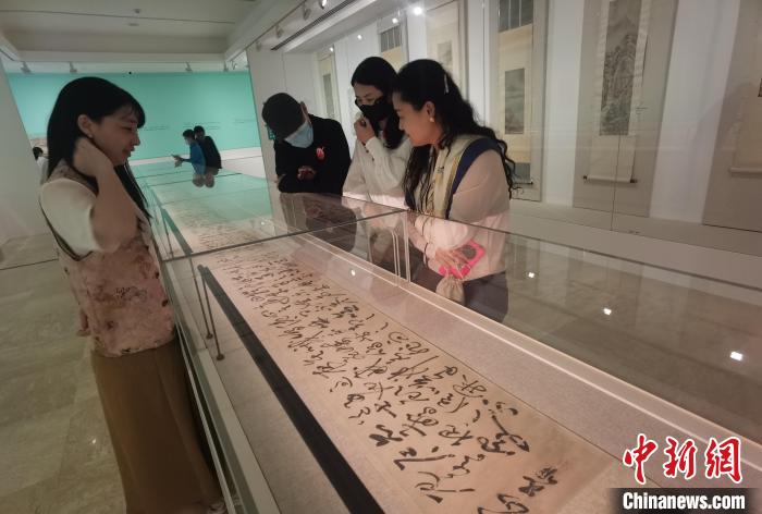 觀眾欣賞展品。中新網(wǎng)記者 索有為 攝 展覽分為“與君同坐”“萬毫臻妙”“停云模楷”“繁花奪目”“其獲我心”五個(gè)單元,共展出書畫作品64件及文房器物20件,為人們理解“文人畫”“文化地理”的江南,乃至當(dāng)下所推崇之“風(fēng)雅”提供文化、藝術(shù)的視閾。 該展覽由何香凝美術(shù)館主辦,廣東省博物館、廣州藝術(shù)博物院(廣州美術(shù)館)、浙江省博物館、蘇州博物館、安徽博物院、吉林省博物院(東北抗日聯(lián)軍紀(jì)念館)、吳江博物館(蘇州市吳江區(qū)蘇州灣博物館)聯(lián)合舉辦。