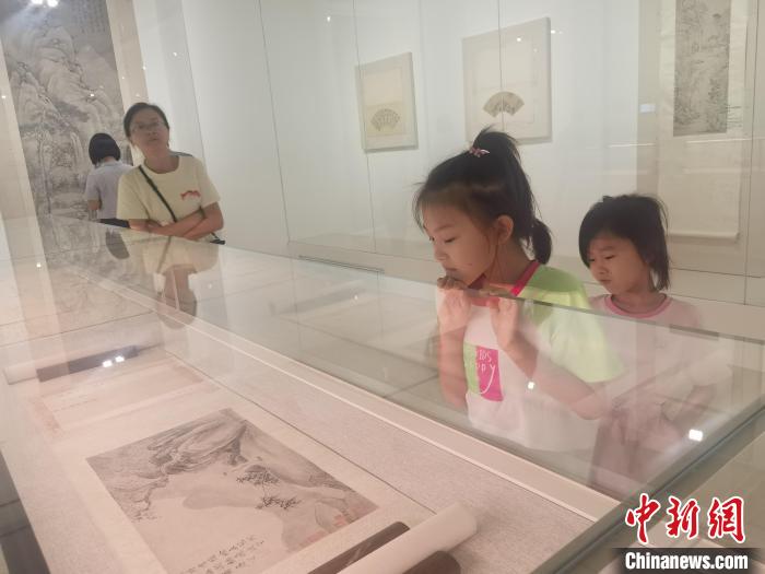 兒童觀展。中新網(wǎng)記者 索有為 攝 據(jù)了解,明代中期,蘇州城市及生活其中的文人、學(xué)者,在園林、文學(xué)、書畫、戲曲、文玩器物等各個(gè)領(lǐng)域創(chuàng)造了非凡的成就,由此孕育出的吳門書畫藝術(shù)是中國古代藝術(shù)的高峰。沈周與文征明、唐寅、仇英及“文氏一門”、陳淳、陸師道等,在近兩百年里共同影響著江南的雅俗之變,構(gòu)成明一代文人溫文爾雅的審美樣式。書法方面,吳門各家好古博采,聚集了沈周、李應(yīng)禎、吳寬、祝允明、文征明等文士,他們共同構(gòu)成了“吳門”書法藝術(shù)的群像。 何香凝美術(shù)館館長蔡顯良在開幕式上致辭時(shí)表示,2020年至2023年,該館與多個(gè)重要文博機(jī)構(gòu)共同舉辦了“家在婁水邊”“領(lǐng)異標(biāo)新”“從董其昌到傅抱石”“風(fēng)從海上來”等專題學(xué)術(shù)展,意在系統(tǒng)地以個(gè)案研究方式,梳理江南不同區(qū)域文化現(xiàn)象,構(gòu)成何香凝美術(shù)館對于“地域文化及藝術(shù)”的系列研究展。此次的吳門書畫及雅玩特展可視為多年來系列專題展的“總結(jié)”?!叭盒情W耀”的吳門,不僅在文化藝術(shù)上承宋元,更是以自家面貌,影響至今。他們精神的閑逸,物質(zhì)世界的雅致,依舊是當(dāng)下值得追憶的文化遺產(chǎn)。