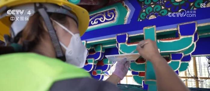 如今的北京中軸線構(gòu)建起了現(xiàn)代都市與歷史空間巧妙融合的城市景觀。北京中軸線上的前門五牌樓曾因常年風(fēng)吹日曬,導(dǎo)致油飾層開裂、失去華彩。2022年,古建油飾彩畫專家堅(jiān)持古法彩繪,對前門五牌樓進(jìn)行了翻新,令牌樓呈現(xiàn)出恢弘大氣的視覺效果。作為世界遺產(chǎn)的北京中軸線同時也是百姓日常工作生活的場景,這讓北京中軸線成為了“活遺產(chǎn)”。而在北京中軸線的最南端,重新復(fù)建的永定門如今已經(jīng)成為了百姓休閑和游客打卡的好去處。