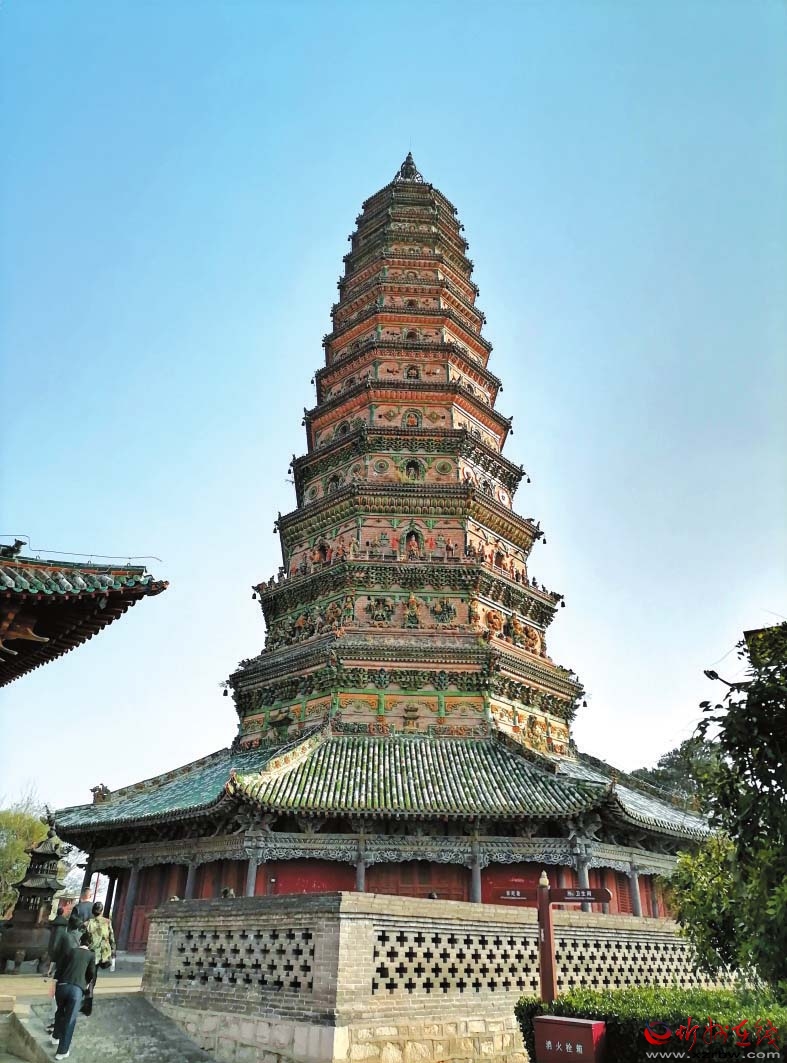 在洪洞縣,有一座舉世聞名的佛教古剎廣勝寺,“三絕一奇”令人驚嘆。一絕是飛虹琉璃塔,是廣勝寺標(biāo)志性建筑,被推為全國第一塔,塔身外部有七色琉璃構(gòu)件與裝飾圖形,每一層都有一組中心圖案,生動逼真,色彩艷麗,被認證為“世界最高的多彩琉璃塔”。二絕是《趙城金藏》,是玄奘從天竺取回的梵文經(jīng)卷中譯善本,世界上僅此一部,被譽為稀世珍寶。三絕是元代壁畫。內(nèi)容以祈雨、行雨、酬神等生活場景為主,布局嚴謹,造型生動,堪稱我國風(fēng)俗神話題材的壁畫杰作。一奇是左右扭古柏,有1300余年歷史,一東一西,像兩位護法將軍守衛(wèi)著大殿。兩株古柏,左邊的朝左扭,右邊的向右扭,甚為奇特。