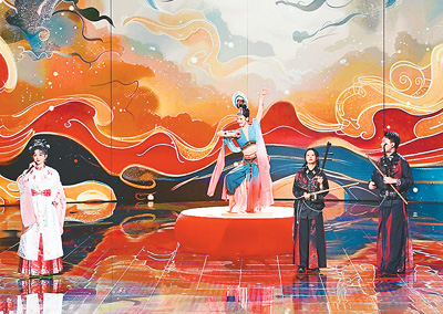 節(jié)目中,年輕主播與非遺傳承人合作的陜北說書《說黃河》,在說唱念之中描繪出黃河岸邊的人間煙火;一曲融合琵琶、中阮、國風(fēng)演唱的《康定情歌》,經(jīng)過別出心裁的編排,綻放出別致的潮流韻味;溫軟的江南風(fēng)情與奔放的拉丁舞配合默契,讓《入畫江南》的舞臺動(dòng)靜相宜,寫實(shí)與寫意相映成趣;創(chuàng)演作品《駿馬》呈現(xiàn)出草原上策馬奔騰、追逐疾風(fēng)的場景,民舞與民樂的巧妙組合,更添故事感?!皠?chuàng)意舞臺,用靈感點(diǎn)亮國潮”“國潮是流淌在中國人血液里的DNA”,觀眾紛紛點(diǎn)贊。