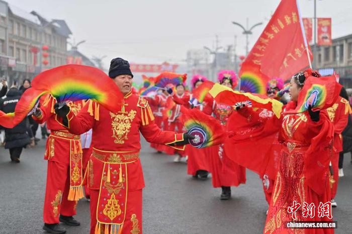 中新社長春2月24日電 題:雪映嗩吶傳街巷 東北秧歌舞星霜