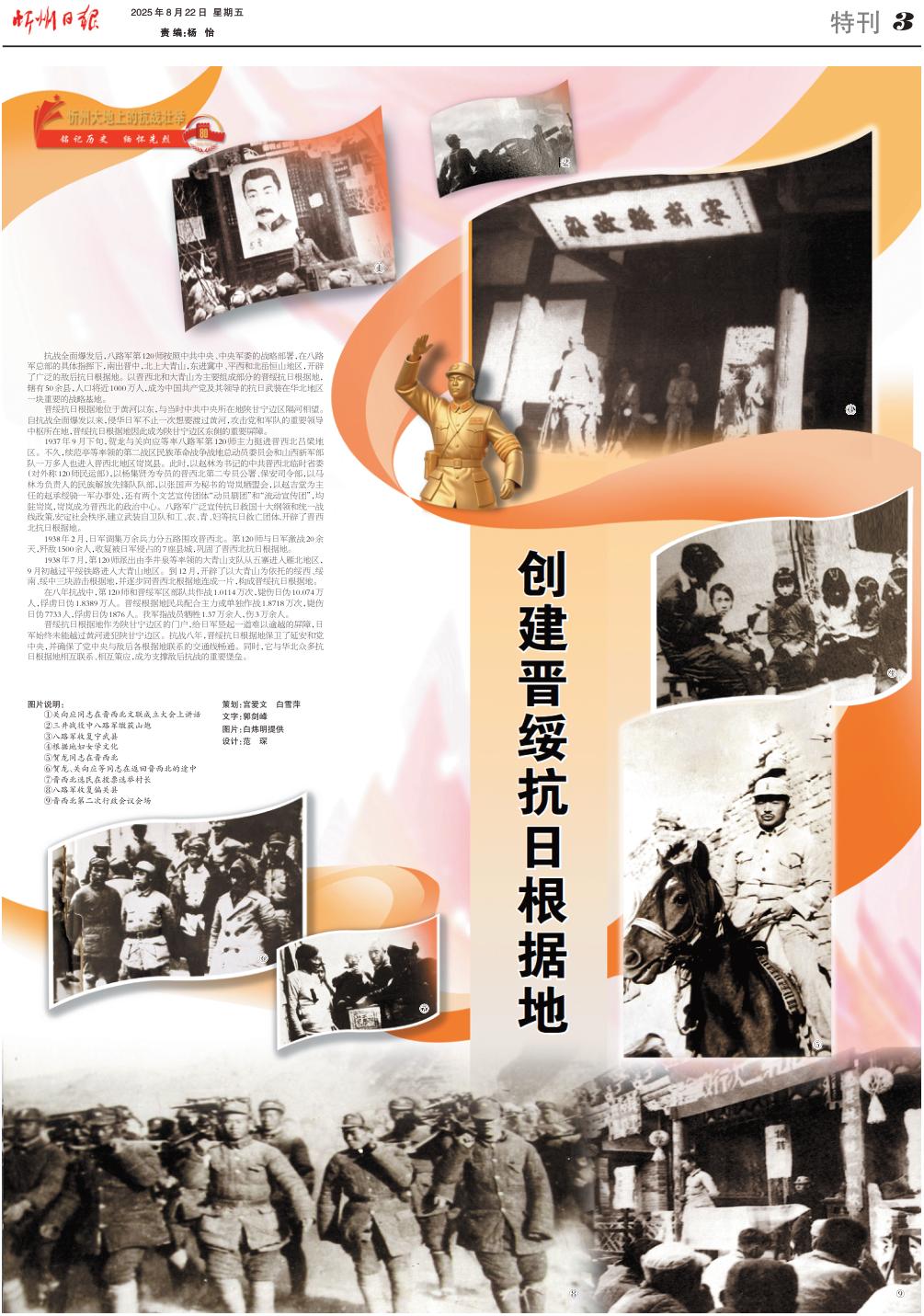 抗戰(zhàn)全面爆發(fā)后,八路軍第120師按照中共中央、中央軍委的戰(zhàn)略部署,在八路軍總部的具體指揮下,南出晉中,北上大青山,東進(jìn)冀中、平西和北岳恒山地區(qū),開辟了廣泛的敵后抗日根據(jù)地。以晉西北和大青山為主要組成部分的晉綏抗日根據(jù)地,轄有50余縣,人口將近1000萬人,成為中國(guó)共產(chǎn)黨及其領(lǐng)導(dǎo)的抗日武裝在華北地區(qū)一塊重要的戰(zhàn)略基地。 晉綏抗日根據(jù)地位于黃河以東,與當(dāng)時(shí)中共中央所在地陜甘寧邊區(qū)隔河相望。自抗戰(zhàn)全面爆發(fā)以來,侵華日軍不止一次想要渡過黃河,攻擊黨和軍隊(duì)的重要領(lǐng)導(dǎo)中樞所在地,晉綏抗日根據(jù)地因此成為陜甘寧邊區(qū)東側(cè)的重要屏障。 1937年9月下旬,賀龍與關(guān)向應(yīng)等率八路軍第120師主力挺進(jìn)晉西北呂梁地區(qū)。不久,續(xù)范亭等率領(lǐng)的第二戰(zhàn)區(qū)民族革命戰(zhàn)爭(zhēng)戰(zhàn)地總動(dòng)員委員會(huì)和山西新軍部隊(duì)一萬多人也進(jìn)入晉西北地區(qū)岢嵐縣。此時(shí),以趙林為書記的中共晉西北臨時(shí)省委(對(duì)外稱120師民運(yùn)部),以楊集賢為專員的晉西北第二專員公署、保安司令部,以馬林為負(fù)責(zé)人的民族解放先鋒隊(duì)隊(duì)部,以張國(guó)聲為秘書的岢嵐?fàn)廾藭?huì),以趙吉堂為主任的趙承綬騎一軍辦事處,還有兩個(gè)文藝宣傳團(tuán)體“動(dòng)員劇團(tuán)”和“流動(dòng)宣傳團(tuán)”,均駐岢嵐,岢嵐成為晉西北的政治中心。八路軍廣泛宣傳抗日救國(guó)十大綱領(lǐng)和統(tǒng)一戰(zhàn)線政策,安定社會(huì)秩序,建立武裝自衛(wèi)隊(duì)和工、農(nóng)、青、婦等抗日救亡團(tuán)體,開辟了晉西北抗日根據(jù)地。 1938年2月,日軍調(diào)集萬余兵力分五路圍攻晉西北。第120師與日軍激戰(zhàn)20余天,殲敵1500余人,收復(fù)被日軍侵占的7座縣城,鞏固了晉西北抗日根據(jù)地。 1938年7月,第120師派出由李井泉等率領(lǐng)的大青山支隊(duì)從五寨進(jìn)入雁北地區(qū),9月初越過平綏鐵路進(jìn)入大青山地區(qū)。到12月,開辟了以大青山為依托的綏西、綏南、綏中三塊游擊根據(jù)地,并逐步同晉西北根據(jù)地連成一片,構(gòu)成晉綏抗日根據(jù)地。 在八年抗戰(zhàn)中,第120師和晉綏軍區(qū)部隊(duì)共作戰(zhàn)1.0114萬次,斃傷日偽10.074萬人,俘虜日偽1.8389萬人。晉綏根據(jù)地民兵配合主力或單獨(dú)作戰(zhàn)1.8718萬次,斃傷日偽7733人,俘虜日偽1876人。我軍指戰(zhàn)員犧牲1.37萬余人,傷3萬余人。 晉綏抗日根據(jù)地作為陜甘寧邊區(qū)的門戶,給日軍豎起一道難以逾越的屏障,日軍始終未能越過黃河進(jìn)犯陜甘寧邊區(qū)??箲?zhàn)八年,晉綏抗日根據(jù)地保衛(wèi)了延安和黨中央,并確保了黨中央與敵后各根據(jù)地聯(lián)系的交通線暢通。同時(shí),它與華北眾多抗日根據(jù)地相互聯(lián)系、相互策應(yīng),成為支撐敵后抗戰(zhàn)的重要堡壘。 策劃:宮愛文 白雪萍 文字:郭劍峰 圖片:白煒明提供 設(shè)計(jì):范琛 (責(zé)任編輯:盧相?。?/span> |