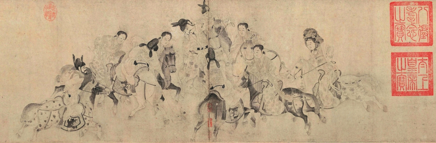 馬球的流行,也曾起到交流媒介的作用。遼代陳及之所繪《便橋會盟圖》,記錄了唐太宗和東突厥頡利可汗在渭水便橋會盟時,大唐和突厥進行馬球比賽的場景。唐中宗時,吐蕃派使者迎接金城公主入藏,使團中有馬球高手。彼時吐蕃請求與大唐比賽馬球,唐中宗派出的選手被吐蕃打敗,接著又派出當(dāng)時還是臨淄王的唐玄宗李隆基和嗣虢王李邕、駙馬楊慎交、駙馬武延秀等人再與吐蕃比賽,獲得勝利。據(jù)《封氏聞見記》載:“玄宗東西驅(qū)突,風(fēng)回電激,所向無前,吐蕃功不獲施?!?/p>