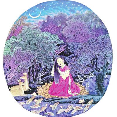 夏塘風輕花落遲(中國畫)