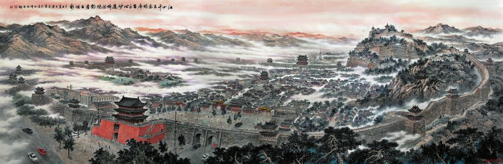 在堅(jiān)持不懈的學(xué)習(xí)和創(chuàng)作過程中,殷渭凌逐漸意識(shí)到,書畫藝術(shù)有其自身規(guī)律,并不存在固定模式,對(duì)于一個(gè)書畫家來說,確定個(gè)人藝術(shù)走向非常重要,想要表現(xiàn)的主題、內(nèi)容、情感最終會(huì)決定創(chuàng)作本身的價(jià)值。也正是清楚了這一點(diǎn),殷渭凌將自己的創(chuàng)作素材鎖定在熟悉和熱愛的故土上。他從家鄉(xiāng)的自然造化中選取創(chuàng)作對(duì)象,提煉感情和思想,然后加以調(diào)整、升華,最終呈現(xiàn)給觀者,讓大家看到了獨(dú)具韻味的黃河、太行、長城、古鎮(zhèn)、雄關(guān)、窯洞、高原、古剎、佛塔等。