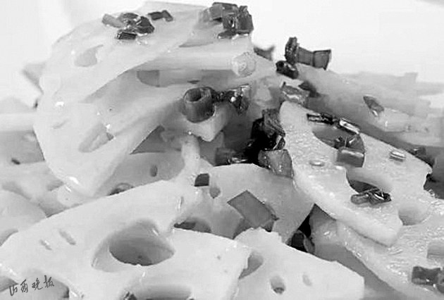 民俗流傳中,人們借助于蓮藕的特征和諧音賦予了它更多的吉祥內(nèi)容。古太原地區(qū)的傳統(tǒng)筵席“八碟八碗”中,有一款坐底大菜——涼拌蓮菜(本地人叫藕根大片)。之所以如此安排,完全就是沿用了諧音吉祥的民俗習慣?!芭骸迸c“偶”諧音,藕根大片占個“偶”,有佳偶天生的美好寓意,故而成了八大碗中必不可少的一道菜品?!吧彶恕庇种C音“連財”,意思是菜上完了,還有扯不斷、沒完沒了的財運,八碗帶財一起來。寓意如此美好,自然人人都滿意。