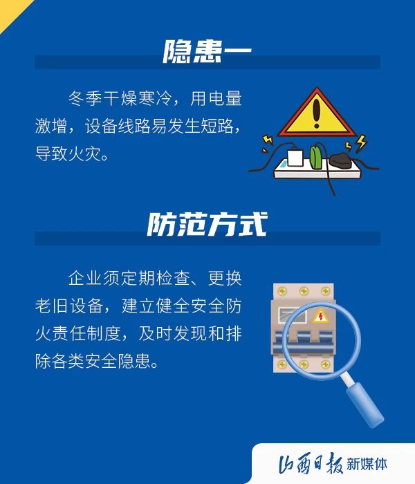進(jìn)入冬季,氣溫下降,晝夜溫差大,冷暖變化不規(guī)律,一些事故發(fā)生概率會(huì)因?yàn)榧竟?jié)性因素而升高,影響企業(yè)的安全生產(chǎn),下面這些隱患需注意。