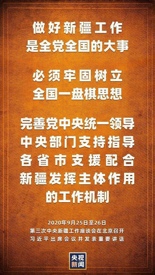 第三次中央新疆工作座談會(huì)9月25日至26日在北京召開(kāi)。中共中央總書(shū)記、國(guó)家主席、中央軍委主席習(xí)近平出席會(huì)議并發(fā)表重要講話(huà)。